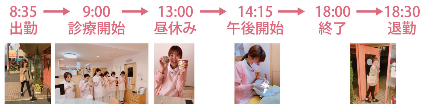 また、私は3年目でまだ至らない点もありますが、先生方や先輩衛生士さんがいつも優しく、丁寧に教えて下さるので安心して仕事が出来るうちだ歯科に就職が出来て良かったなと思っています!